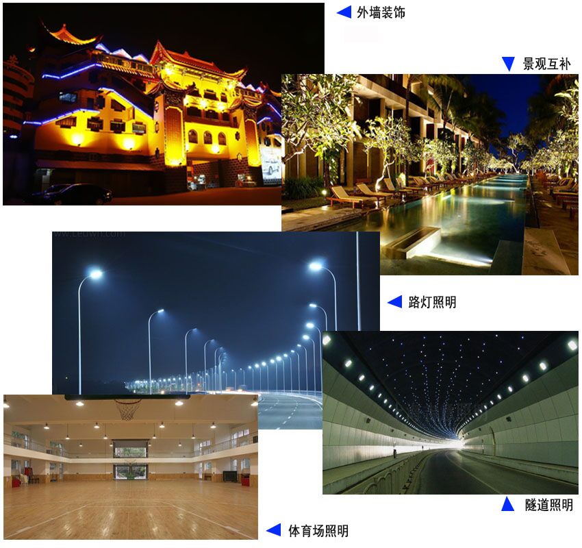 工程案例:路燈照明 隧道燈工程 體育場(chǎng)照明 景觀互補(bǔ) 外墻裝飾
