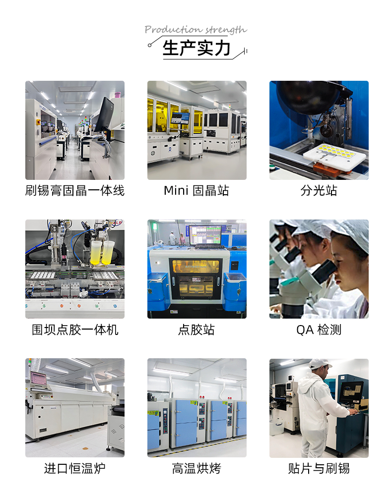 8.支架與芯片電極焊接點(diǎn)統(tǒng)一采用銅鍍銀結(jié)構(gòu) 使用納米級(jí)焊錫膏焊接 粘接牢固 導(dǎo)熱性更佳 反光效率高 光源整體光效可達(dá)120LM/W以上;