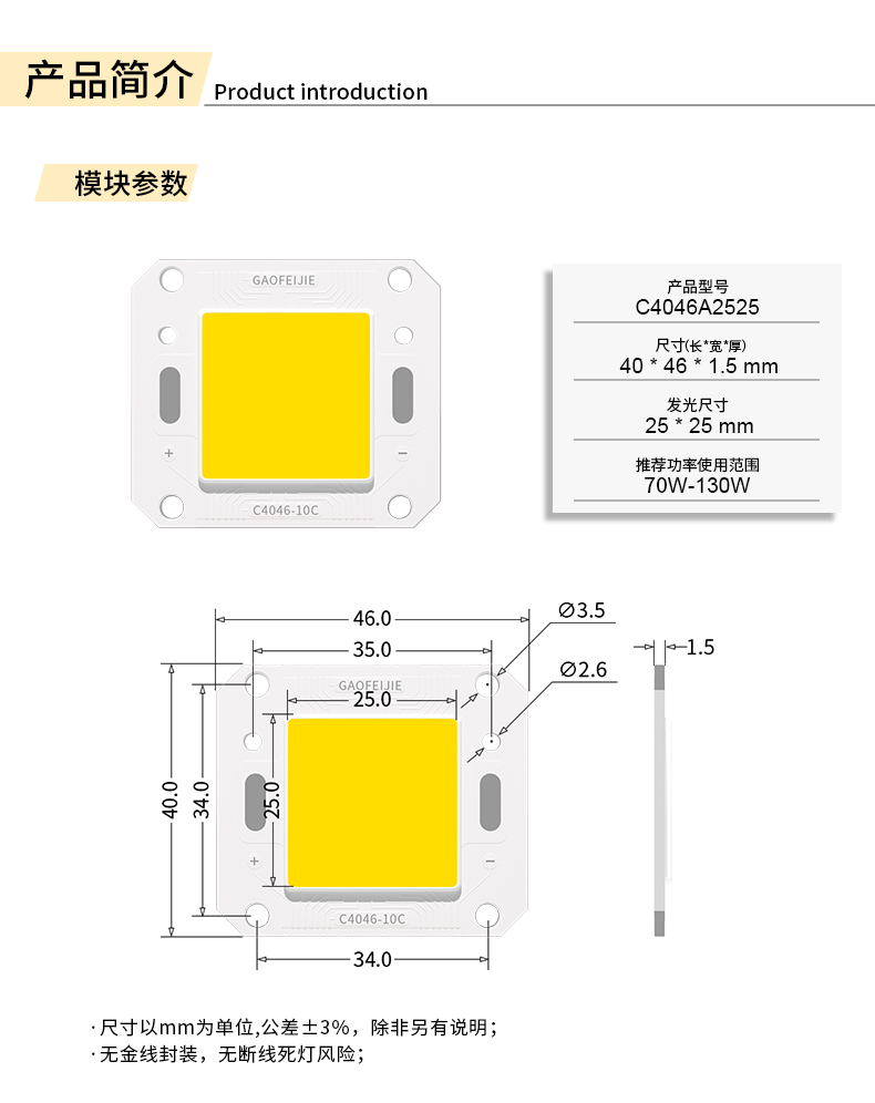 下一條: COB光源-戶外照明系列C4046A2525-70~200W-12CNB