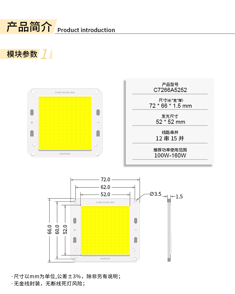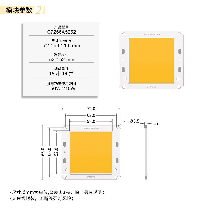 ◇ 固晶厚度薄,散熱更好,超低熱阻,耐高壓,可通大電流使用